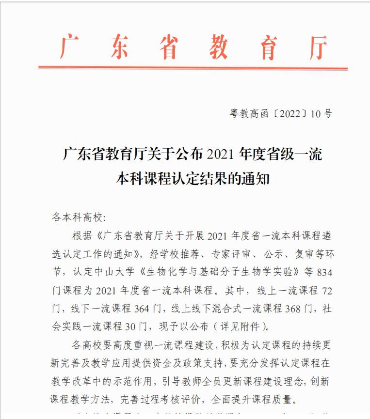 2022年5月《统计学》课程获批广东省一流本科课程(粤教高函([2022] 10号)